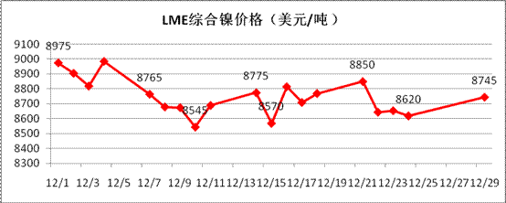 對于來年1月份走勢判斷,從技術(shù)面看,倫鎳在未站穩(wěn)8800美元/噸以上時(shí),市場仍舊存在下跌至8100美元/噸一線的風(fēng)險(xiǎn),甚至存在創(chuàng)新低的可能。從基本面看,倫鎳庫存依舊高位,表面看市場供應(yīng)繼續(xù)充足,但從中國進(jìn)口精煉鎳、鎳鐵的量來看,并未呈現(xiàn)繼續(xù)增加的態(tài)勢,可見實(shí)際國外供應(yīng)量已基本接近現(xiàn)有峰值,國內(nèi)將進(jìn)入去庫存化周期,對于鎳市短期而言弱勢盤整是主流。