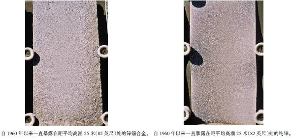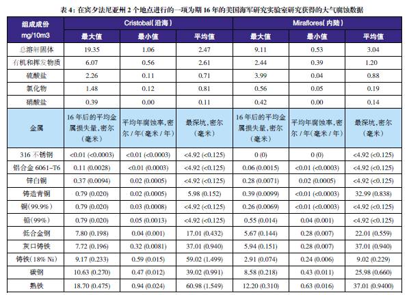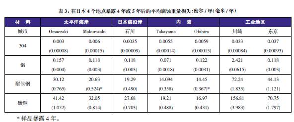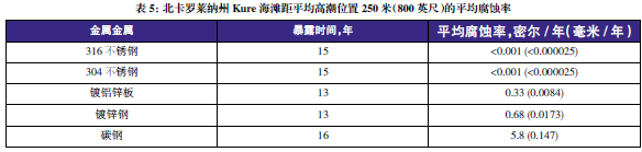 表3至表6的數據來自于日本、巴拿馬、Kure 海灘(北卡萊羅納州)和南非的試驗地點??衫眠@些數據在類似環境中選擇適當的金屬材料,進行生命周期成本分析。
